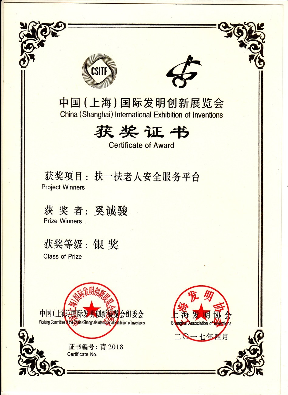 | 扶一扶老人安全服务平台 | 奚诚骏 | 银奖 | 2017年 |