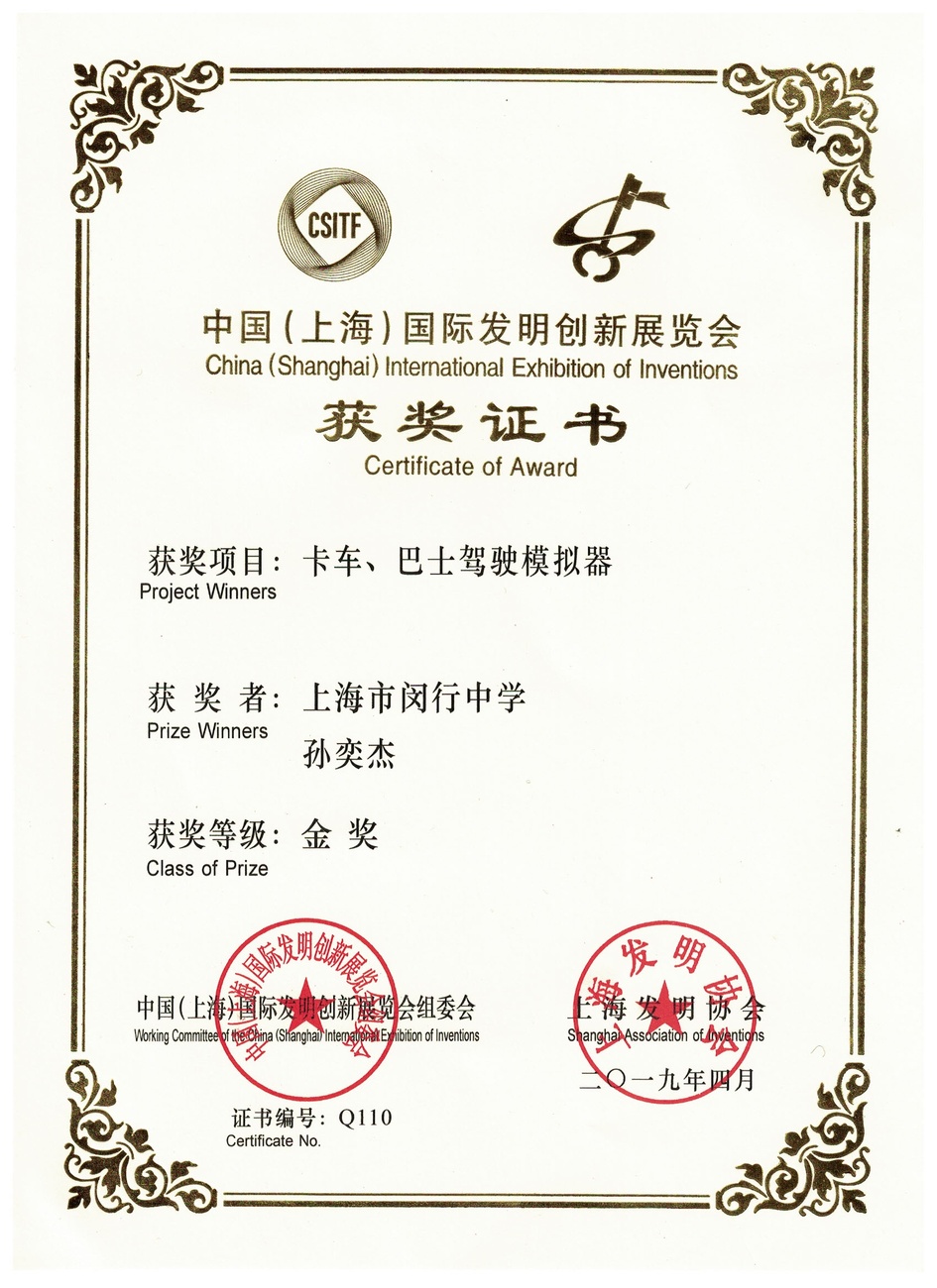 | 卡车、巴士驾驶模拟器 | 孙奕杰 | 金奖 | 2019年 |