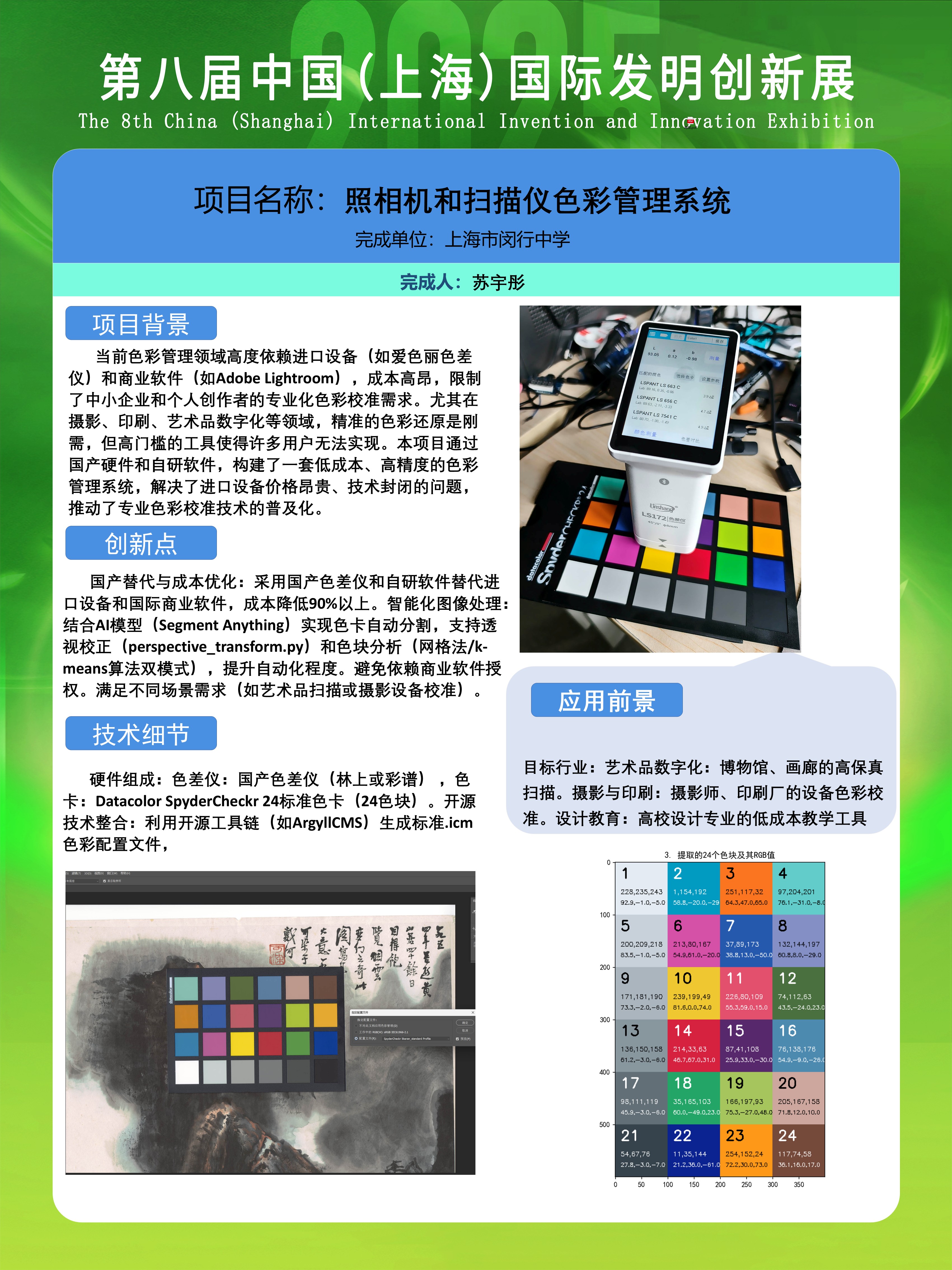 | 照相机和扫描仪色彩管理系统 | 苏宇彤 | 金奖 | 2025年 |